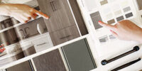 client choosing cabinet finish samples at agile cabinetry in Mt. Juliet