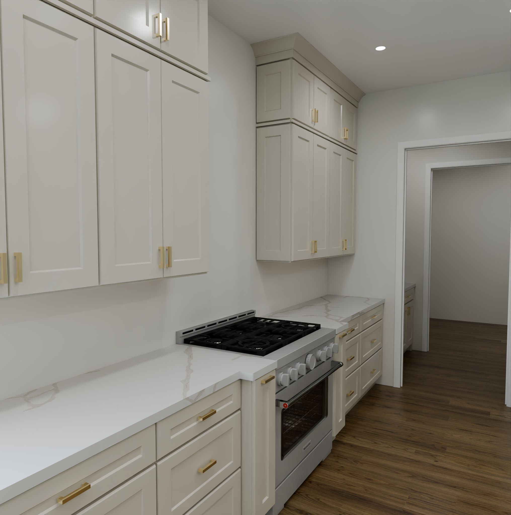 Beyond its good looks, this Westhaven kitchen was designed for optimum functionality. The addition of stacked cabinetry makes full use of the vertical space, providing generous storage while elongating the visual height of the room.