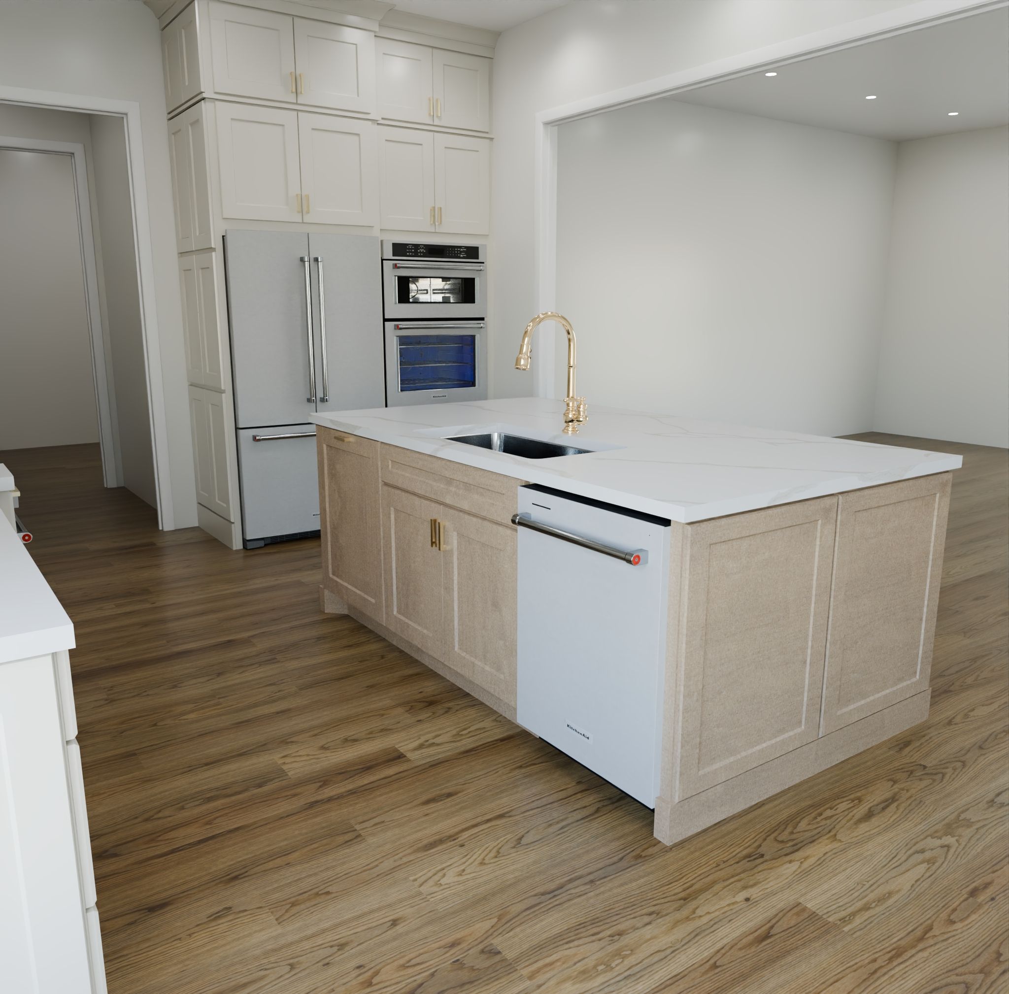 The combination of Oatmeal and Karamel Birch delivers a kitchen that feels calm, cohesive, and undeniably welcoming — a space designed for gathering, cooking, and making lasting memories.