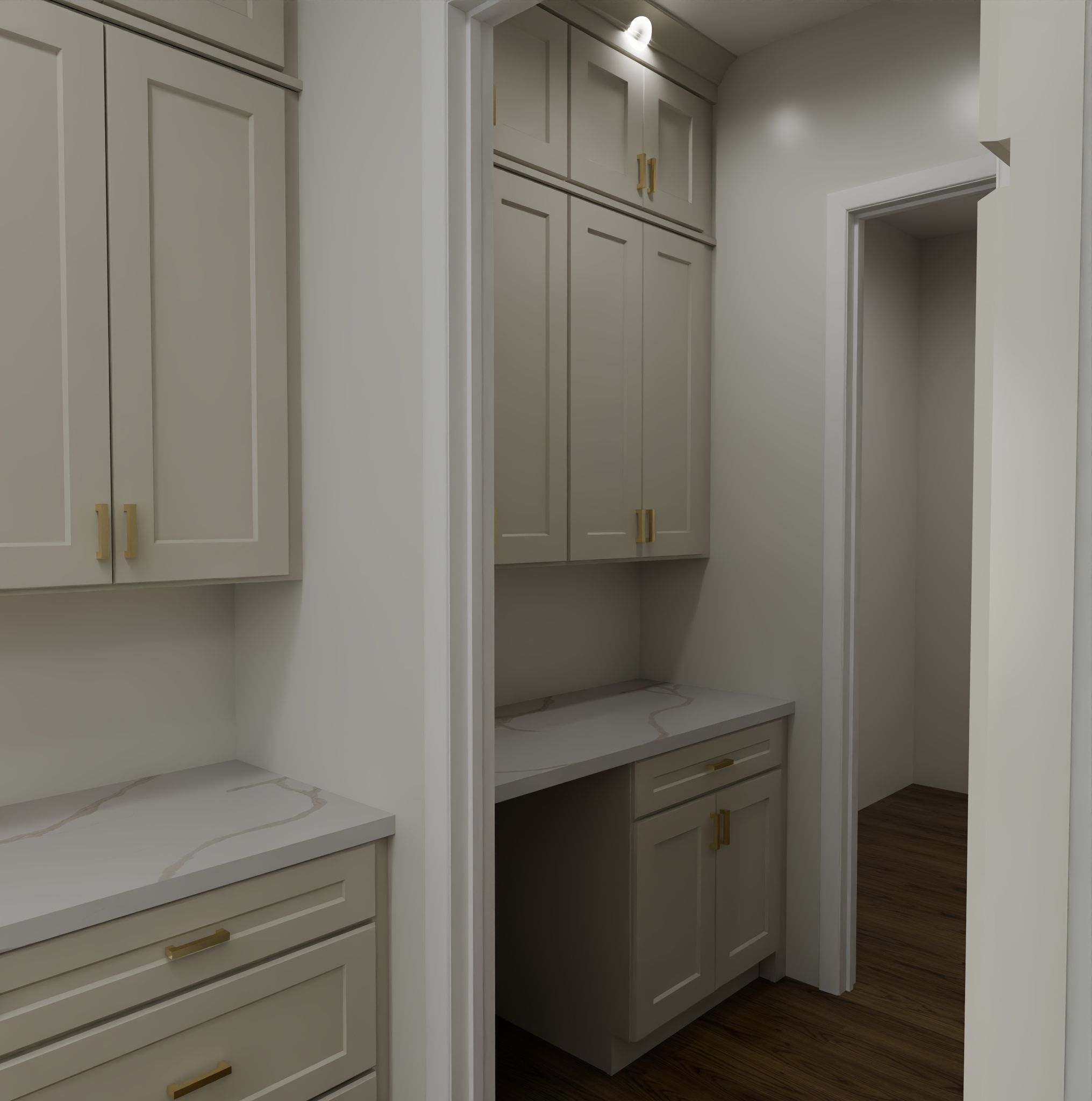 The Oatmeal cabinetry offers a soft, neutral base that feels both light and grounded. Its creamy undertones bring brightness to the space without appearing stark, making it a versatile choice for both natural and artificial lighting. Paired with Karamel Birch accents, the combination introduces a subtle richness — the natural wood grain of Birch adding depth, movement, and a touch of organic beauty to the design.