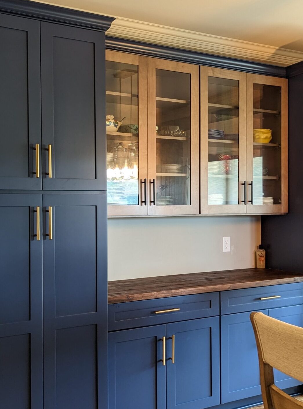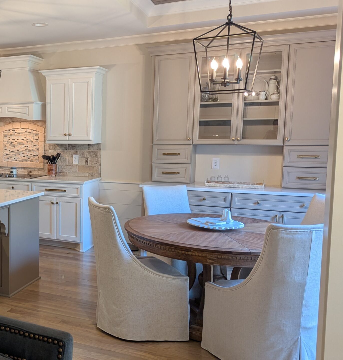 Details: We did an entire kitchen and mother-in-law style suite for this client, but this particular add on was a lovely feature piece with a two-toned color scheme, showcasing some of Wellborn's most popular colors and stains.